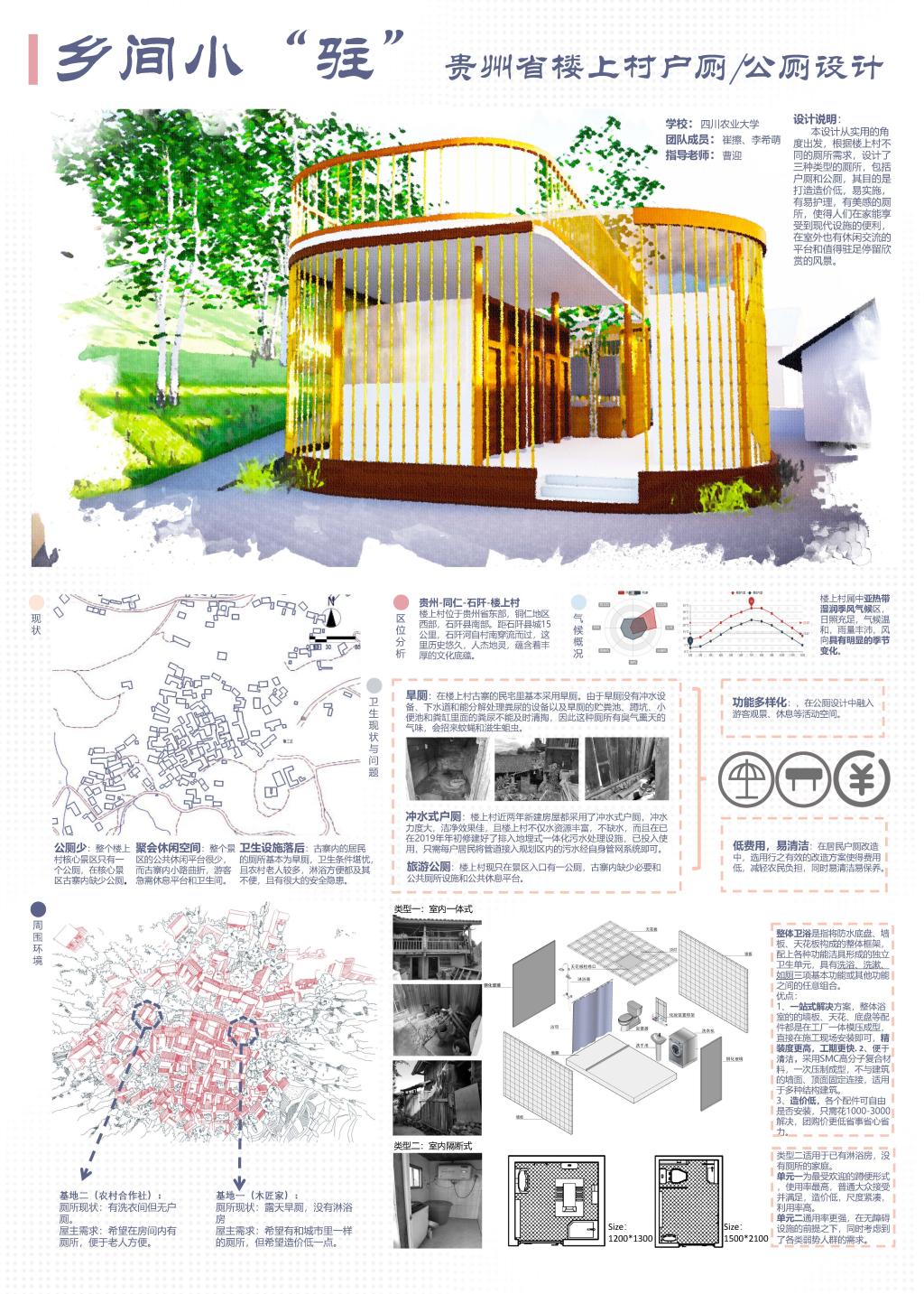 据悉,全国高等院校大学生乡村规划方案竞赛由中国城市规划学会乡村规划与建设学术委员会主办,由贵州大学、华南理工大学、北京建筑大学、安徽农业大学承办。贵州省国土资源厅、广东省住房和城乡建设厅、安徽省自然资源厅等作为支持方,为大赛提供各竞赛单元的真实村落。作为本届新设置的竞赛单元,乡村户厕设计方案竞赛呼吁参赛团队关注各地乡村户厕,共同探寻适应地方实际需要的改造经验和设计思路。