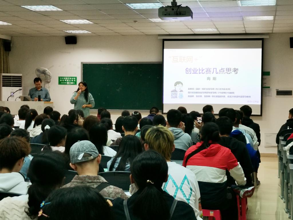向刚老师从“互联网+”、 “创青春”赛事基本情况、如何挖掘好的参赛项目、创业项目的注意事项、互联网+参赛项目评审看点、创业导师和指导作品思路六个方面全面深刻的分析了创新创业大赛的内容。结合自己带队参赛的经历,向老师用多达150页的PPT为在座的师生剖析经典案例,对比分析大赛数据,使同学们更为直观地感受到创新创业的魅力与精彩。