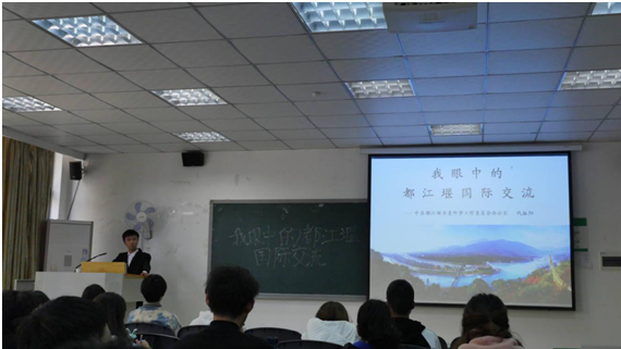 在交流会中,首先由代振阳部长为同学们介绍了外事相关内容,其中着重介绍了曾在都江堰市举办或举行过的外交会议和外交活动。这些内容让同学们初步了解关于国内与国外紧密的联系以及频繁的国际交流。代部长就出国趋势、目标及动机,和如何在汹涌的出国大潮中保持冷静,如何为留学类考试做准备,如何在众多的留学国家、学校和专业间做出选择进行了分析。对于留学申请程序和材料的收集等同学们较为感兴趣的问题做出讲解。同学们的疑问与困惑得以解答,在代部长的介绍中同学们受益匪浅。