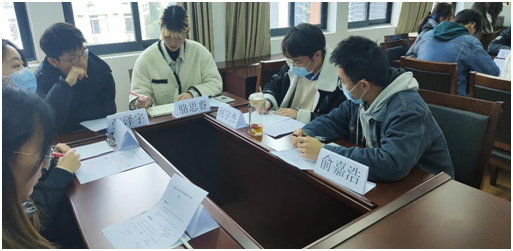 进入比赛第二赛程——职场面对面。根据名单顺序采取三人为一组的群面方式,对选手进行模拟面试提问。提问现场,各评委老师分别从面试穿着礼仪到选手的面试岗位、自我认识等作出提问,提出建议与考察注意点。最后根据评委们再次讨论根据本轮提问表现打分,经过探讨、分析,最后确定本次比赛最终结果为:吴洁同学获得一等奖、杜坤能和骆思睿同学获得二等奖、张泽宇、孙军翔和蒋杰同学获得三等奖。