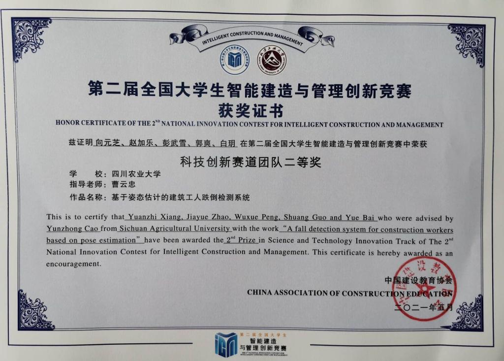 近日,由中国建设教育协会、智慧城市与智能建造产业创新联盟、住房和城乡建设部新型建筑工业化集成建造工程技术研究中心联合主办,北方工业大学和中国建设教育协会校企合作专业委员会承办的“第二届全国大学生智能建造与管理创新竞赛"总决赛及颁奖典礼在北方工业大学落下帷幕。新葡萄8883官网AMGCV智造团队的作品《基于姿态估计的建筑工人跌倒检测系统》获A赛道-科技创新赛道团队二等奖。