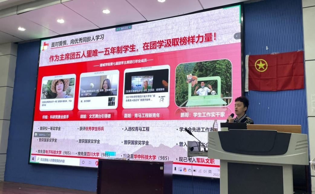 活动邀请了学校“优秀学生标兵提名奖”获得者李明杰学长分享成长经历,他号召同学们放下焦虑,敢做敢想,敢为人先,引导同学们以实际行动践行“请党放心,强国有我”的青春誓言;活动还邀请了学校第九期青马班学员学院学生主席刘佳欣学姐分享她学习党的二十大精神的感悟,她向大家阐述了文化自信的深刻含义,讲解当代大学生如何在繁荣与发展中国优秀传统文化中贡献自身力量,引导同学们以实际行动弘扬文化自信;活动还邀请了大学生艺术团的同学为大家带来了歌唱表演《我的梦》,激励同学们奋勇前进,不负青春誓言。