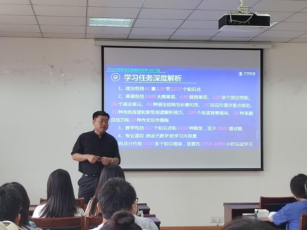本次课程由万学教育集团西南交大教学主管,中国顶级考研辅助专家,万学教育集团金牌讲师朱子骁主讲。学院24届有意考研的同学参与其中,现场座无虚席。