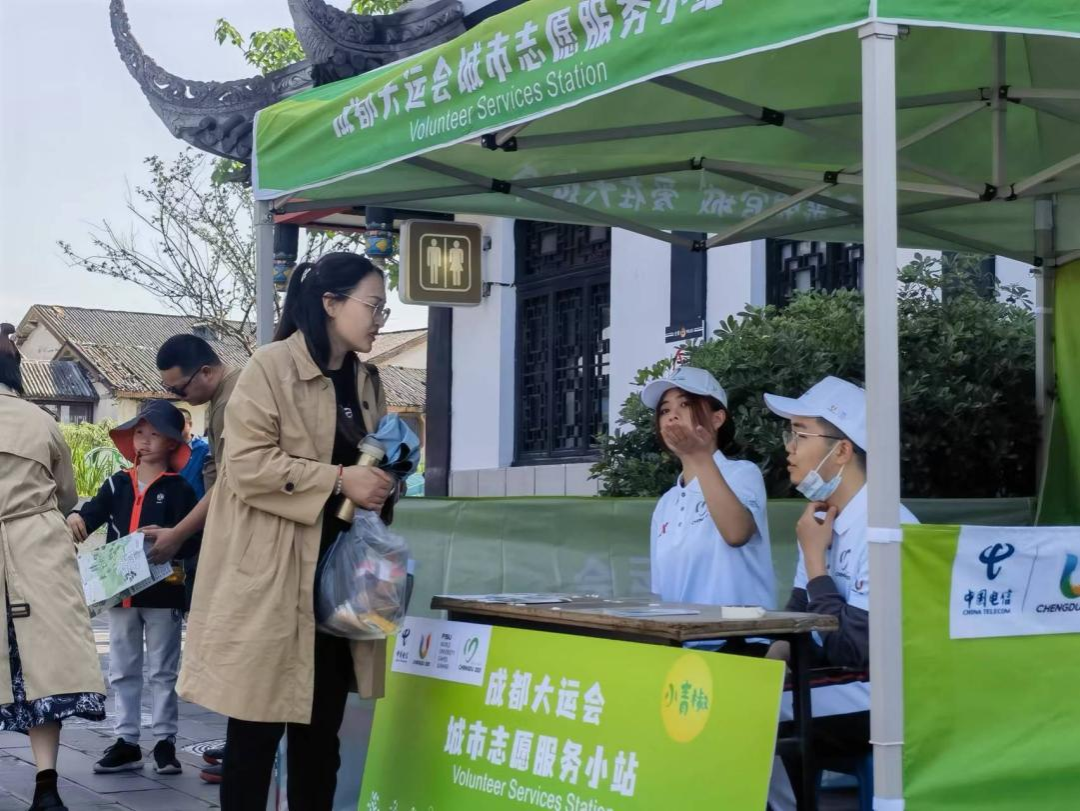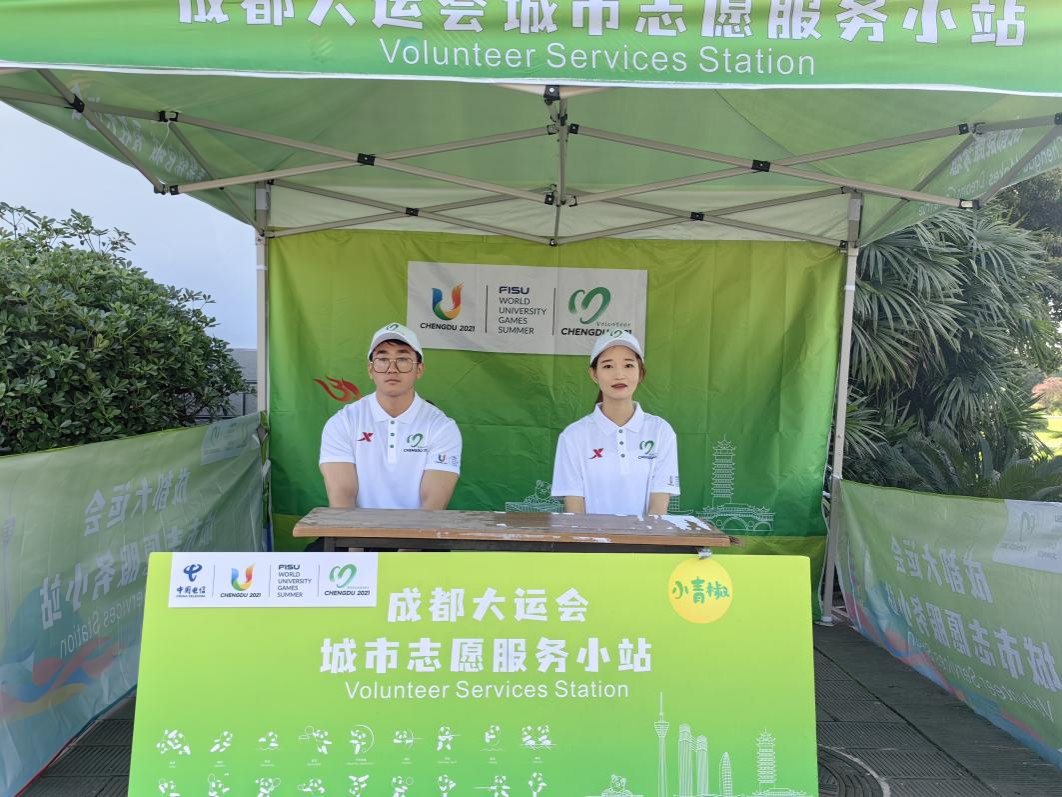 小站志愿者每天上岗前需做好小站搭建、物资搬运、物品核对等各项岗前准备工作。在小站运营的过程中,志愿者们统一着装社区发配的大运会志愿者服装、帽子。面对游客的询问,志愿者们始终面带微笑,并礼貌回答,为游客提供优质咨询服务。除此以外,小站志愿者们还帮助游客暂时保管部分行李,帮助小朋友寻找家长,为过路游客提供休息座位等。